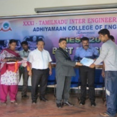 Adhiyamaan College of Engineering is one of the educational institutions developed by Adhiyamaan Educational & Research Institution - a trust, which was started in the year 1987-1988 to cater the needs of the nation in the development of technocrats and to provide facilities for educating and training men and women to meet the entrepreneurial and management needs. The management has created adequate infrastructural facilities and sufficient funds and is keen on developing the institution for higher education.
