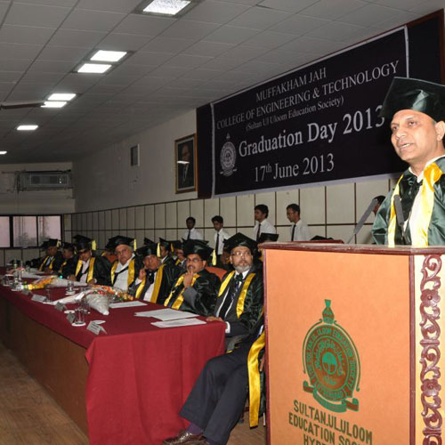 Muffakham Jah College of Engineering and Technology (MJCET) was established in the year 1980 by Sultan-ul-uloom Education Society(SUES) which is formed by a group of visionaries and intellectuals from various walks of life. Today that tiny acorn has developed into a mighty oak. Today it is a premier institute, offering B.E Courses in 8 panches (Civil, ECE, CSE,IT, EEE,EIE, Mechanical & Production) and 5 M.E Courses (CAD/CAM, Structural Engg, Digital systems, Computers & Power Electronics) of two years duration. The current intake of all the B.E. Courses is 780 in addition to the 102 students in the M.E. Programmes. Research Centers started in ECE Dept & Mech. Engg. for Doctral Studies.The college is affiliated to the Osmania University, Hyderabad and approved by AICTE, New Delhi. We are applying for Re-accreditation of NBA. As per survey of Out-Look Magazine, MJCET was ranked 48th among top 100 Engg.Colleges of both Govt. and Private in India. The Week Magazine Ranked 50th among the Top 50 Pvt. Engg.colleges in India. MJCET is among the Top 5 Engg. Colleges in Hyderabad and Top the list among Minority Engg. Colleges in the State.