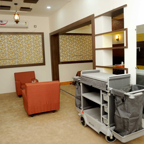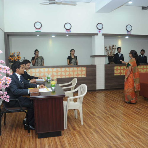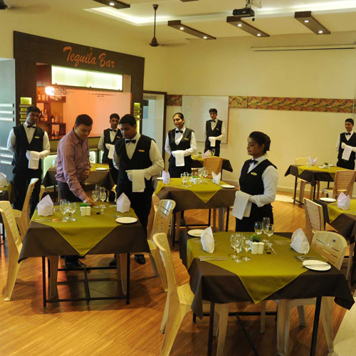 The college has excellent infrastructure compressing of three storied building which houses well equipped kitchens, training restaurants, bar & has bakery, classrooms, front office lab, training guest room, laundry conference and seminar hall, computers lab library boy’s common room, girls common room