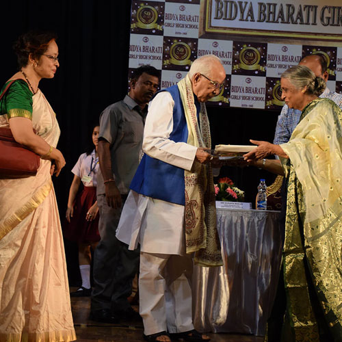 Bidya Bharati Girls’ High School was established by the Vidya Bharati Society for Educational and Scientific Advancement with a view to explore new horizon with a team of enlightened dreamers. So, fifty good years back on 2nd November, 1965, under the able entrepreneurship of the erudite engineer and scientist, Late Sri P.K. Dasgupta and his wife Smt. Bharati Dasgupta, Bidya Bharati ventured forth on its new journey only with nine students in a rented house at New Alipore, Kolkata. By dint of perseverance and determination, courage and integrity Bidya Bharati Girls’ High School has set up a new milestone in academic and co-curricular fields. At present the three units of Bidya Bharati Girls’ High School-Mominpore & Behala (Primary sections) and New Alipore (Secondary and Higher Secondary sections) stand glorified imparting the light of Knowledge to more than 4500 students. Bidya Bharati Girls’ High school was upgraded to a Higher Secondary School in the year of 1999.